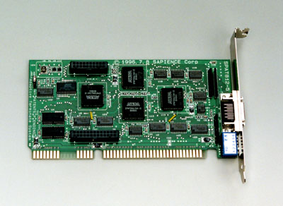 「それいけ! 空援隊1号」の機能に、スペースインク・アクセラレータ機能を付加したデータ受信ボード。日刊ゲンダイのコンテンツを始めとする「紙面イメージ」の高速ビューイング実現。パラパラ捲る様に新聞が読めます。IBM、AT&T、三菱電機の特許技術を利用したJBIG圧縮展開チップ、暗号チップ、ドキュメントを高画質で拡大、縮小するズームチップが搭載されています。定価41,000円(ケーブル、消費税別)です。 |