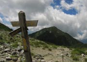 | 300m下って、300mを登り返して、たどり着いた三ノ沢岳では、気持ちよくてつい居眠りからお昼寝・・・。 その間にガスが上がってきて、分岐に戻った時は、ガスの中でした。 | |||
