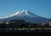 | 早朝の電車で下吉田駅に下車。 富士急線の窓からは陽の出に染まる富士山に出会いました。 車道の歩きが長いのでタクシーを探したのですが見当たりません。 しかたなく車道を歩き始めたのですが、おかげで右手にずーっと富士山が一緒でした。 | |||